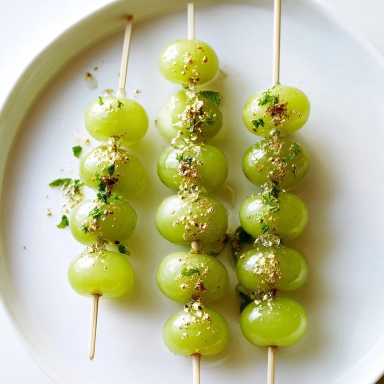 Pin A festive and playful New Years dessert featuring twelve sweet grapes on skewers, one for each stroke of midnight, symbolizing good fortune in the coming year.