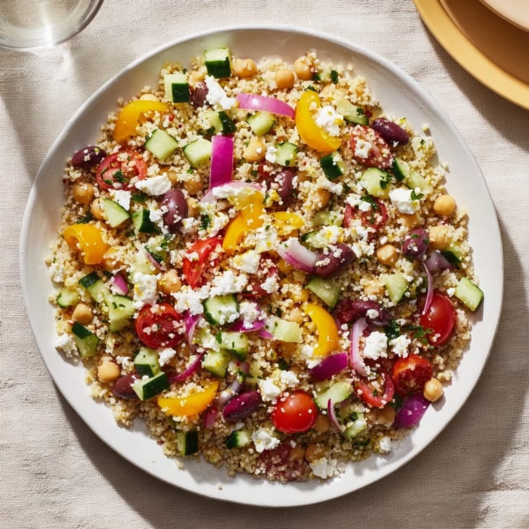 Pin I stumbled onto this bowl on a Tuesday night when my fridge was half-empty and my energy was fully gone. I had chickpeas, some sad-looking vegetables, and a block of vegan feta I'd forgotten about. What came together in fifteen minutes tasted like I'd actually planned something. The lemon hit first, then the brine from the olives, and suddenly I wasn't tired anymore.