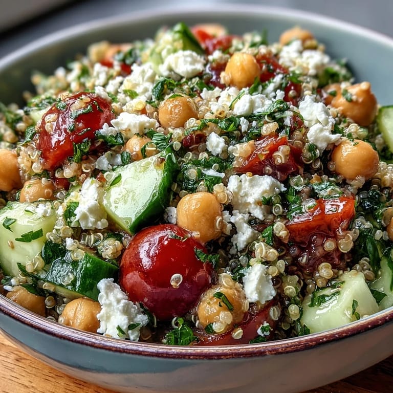 Pin My neighbor knocked on my door one July afternoon holding a bag of cucumbers and tomatoes from her garden, asking if I had any ideas. I tossed together quinoa I had leftover from meal prep, a can of chickpeas, and her vegetables with whatever was in the fridge. We ate it on her porch with iced tea, and she asked for the recipe three times before admitting I should write it down. That afternoon taught me that the best meals happen when you stop overthinking and just start chopping.