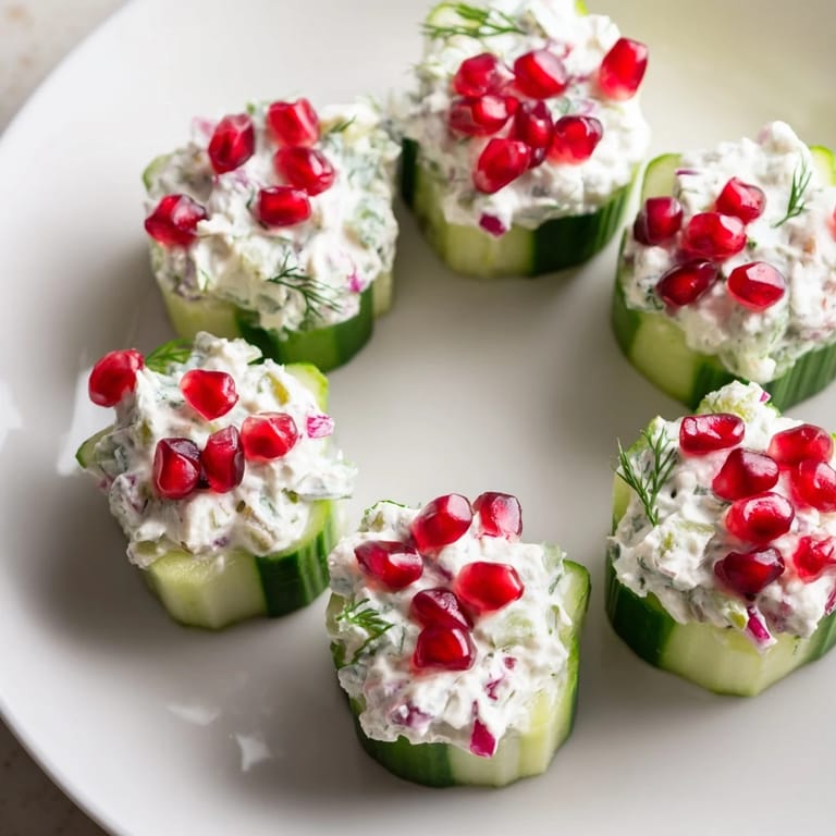 Pin A festive, crisp winter salad served in delicate cucumber cups, shaped like snowflakes and filled with a creamy, tangy filling. Perfect as an elegant appetizer or party snack.